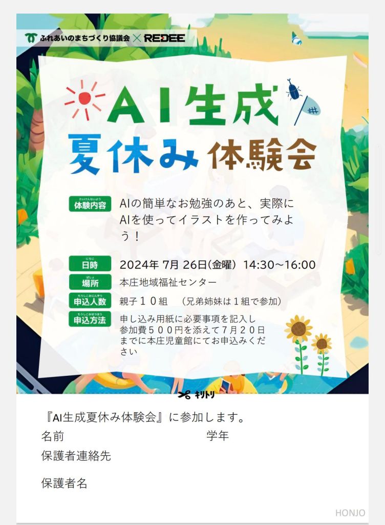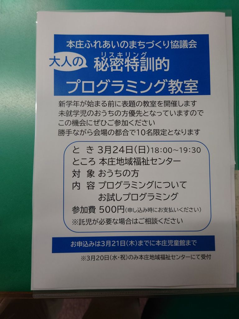 本年度もプログラミング体験会を行います。皆さま是非ご参加ください。申込み用紙は本庄児童館に置いています。